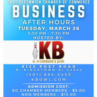 Tuesday Mar 24, 2026March 2026 Business After Hours Meeting Hosted by: Kingstown Bowl March 24, 2026 5:00pm - 7:30pm ... read moreCategories: Chamber Of Commerce, Monthly Chamber of Commerce Meeting